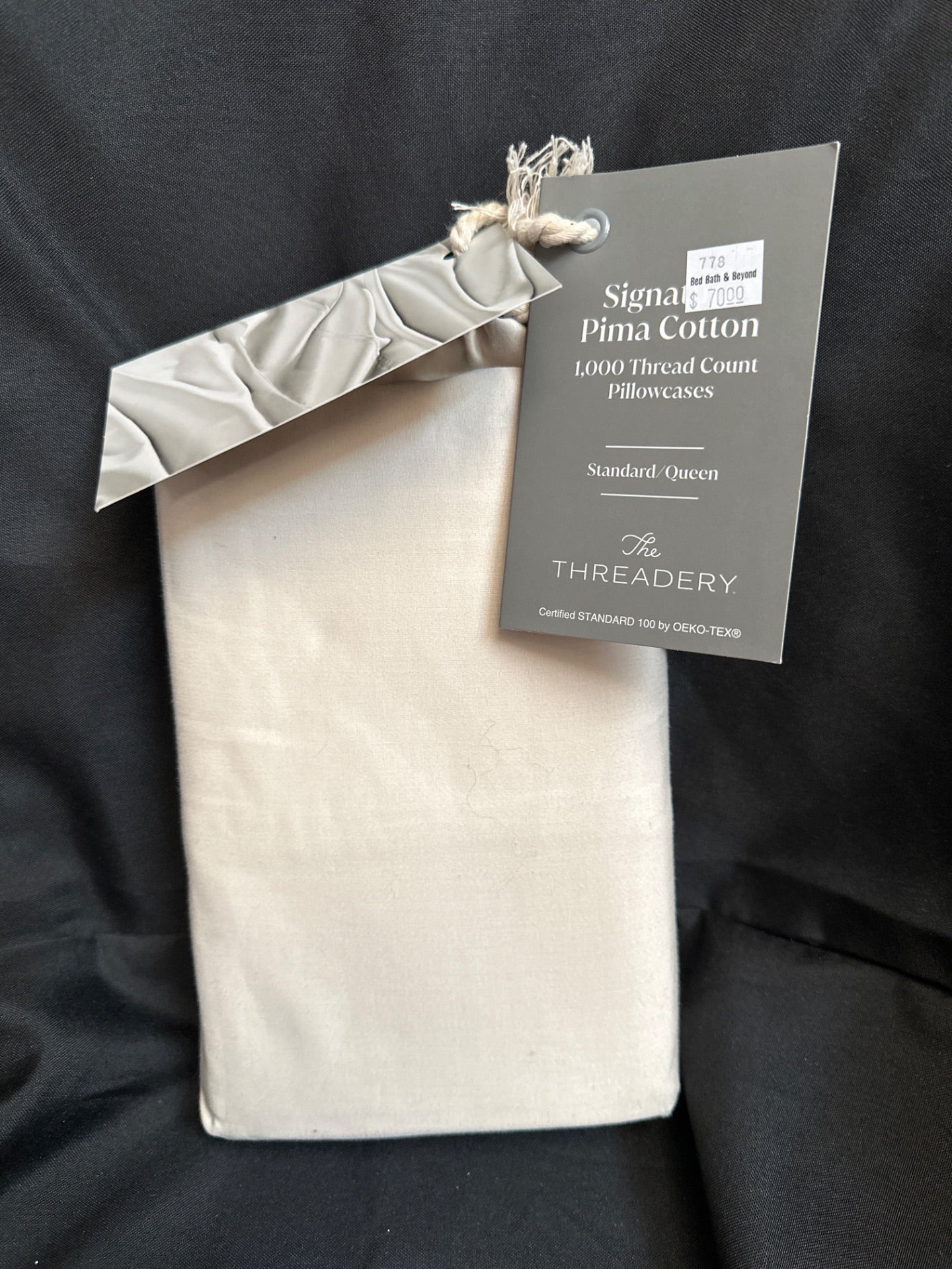 The Threadery Signature 100% Pima Cotton 1000 tc Standard/Queen Pillowcases Ivory/Beige (Retail Price $70)