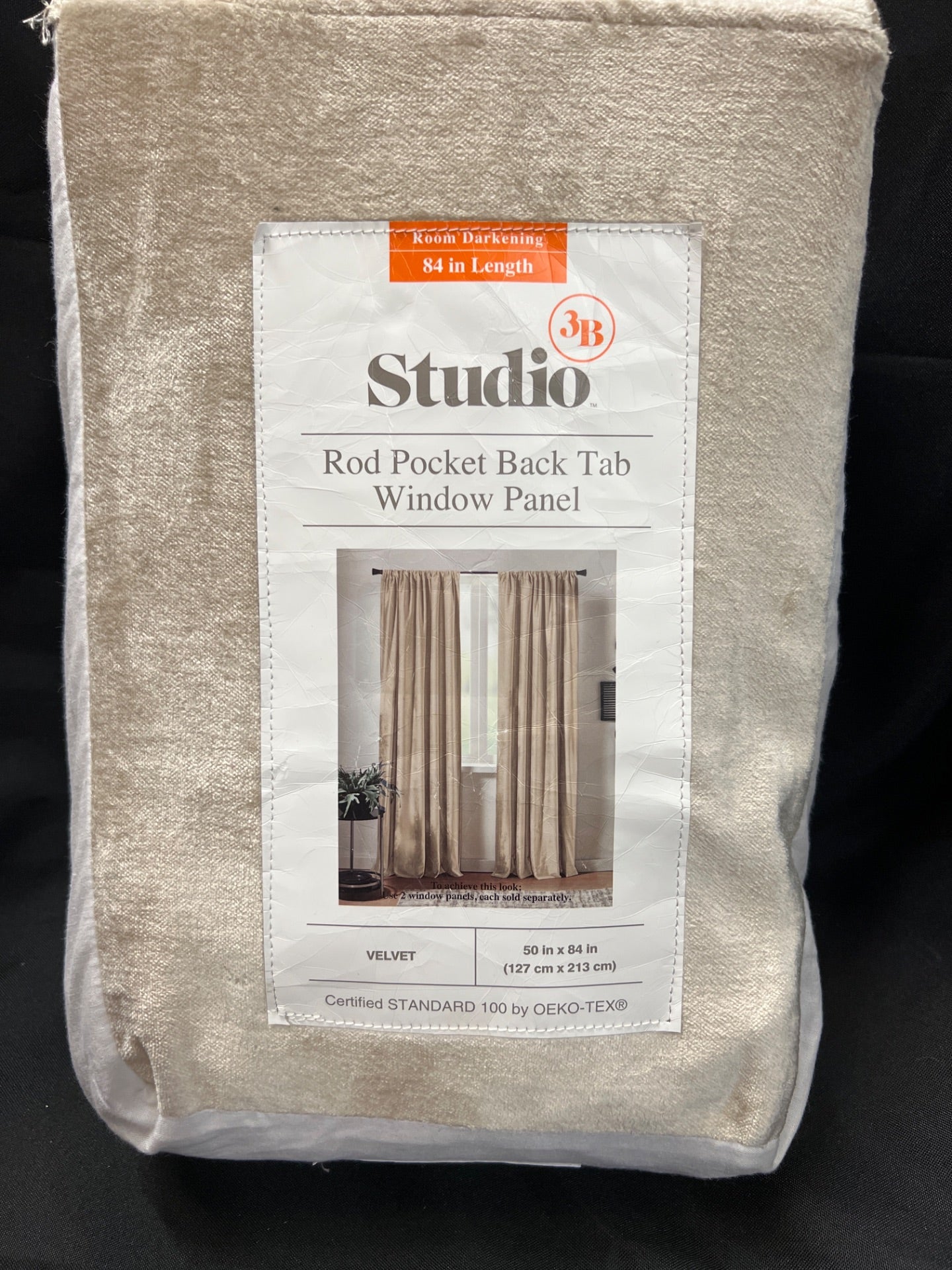 Studio 3B Velvet 84" Room Darkening Window Curtain Panel in Khaki (Single) (Retail Price $73)