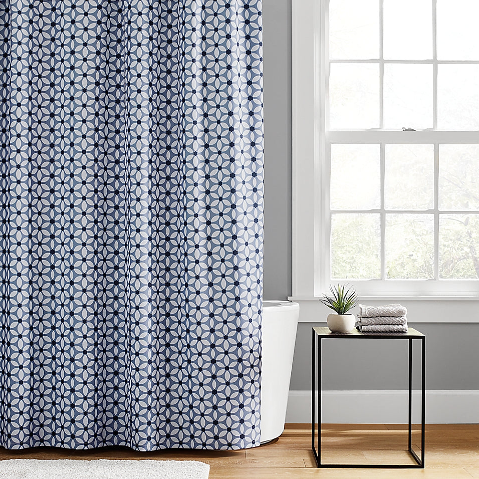 Simply Essential 72-Inch X 96-Inch Tile Flower Shower Curtain in Blue (Retail Price $30)