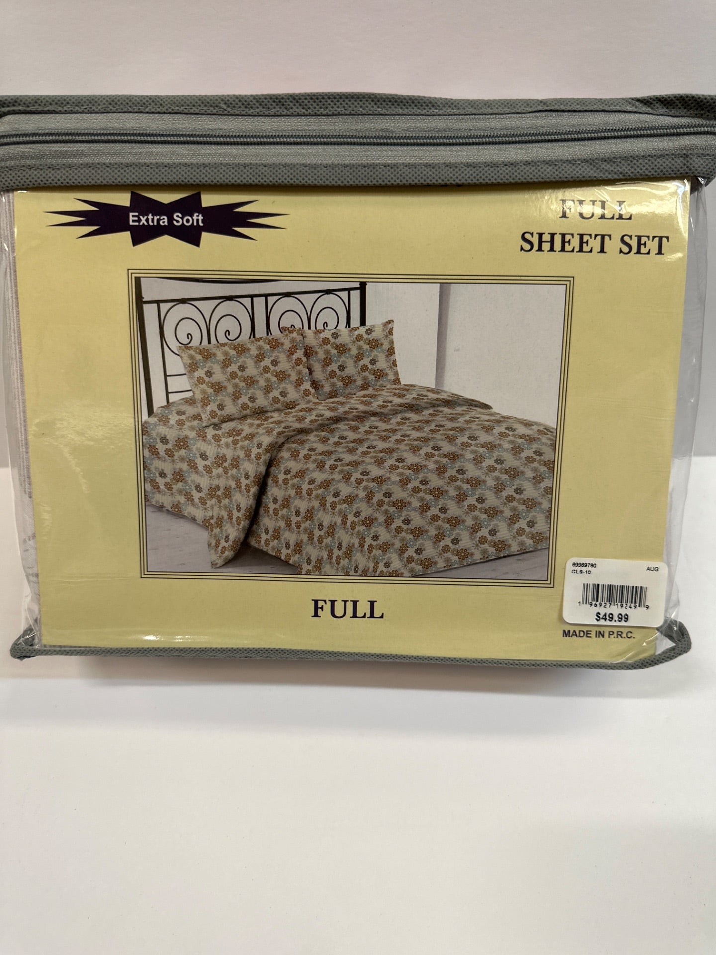 Manhattan Collection Full Sheet Set - Brown/White Floral Pattern (Retail Price $49.99)